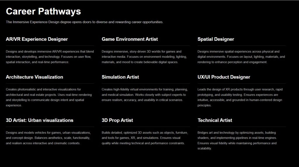 Our Bachelor of Immersive Experience Design programme is a comprehensive 4-year undergraduate degree that integrates design thinking, emerging technologies, and spatial practices. The curriculum equips students to design meaningful, human-centred experiences across physical, digital, and hybrid environments, preparing them to respond to evolving challenges in immersive and interactive design.