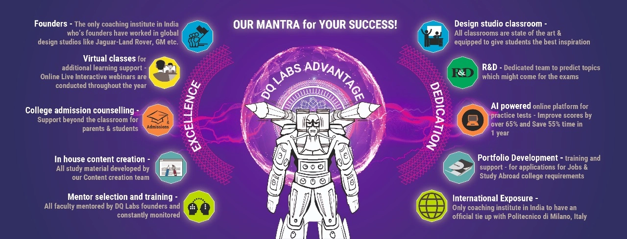 DQ Labs with its innovative mix of online study material, books and sketch development course has not only just taught students but given them a unique experience in terms of bringing out their creativity and out of the box thinking approach from within. These results can clearly be seen with its past students in the best institutes like CEPT, IIT’s, IISc, NIFT and NID